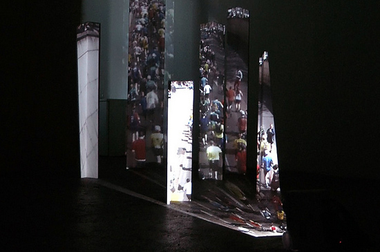 Vernissage am 24.04.16 um 11.00 Uhr Begrüßung: Franz Mayer, Galerie M Grußwort: Dr. Maximilian Ingenthron, Bürgermeister und Kulturdezernent der Stadt Landau Einführung: Sabine Idstein Musik: Nathalia Grotenhuis - Percussion and Soundart Kurator: Felix Redlingshöfer, Leitung Kunstportal Pfalz, Initiator des Projekts JUNGE KUNST AUS DER PFALZ Unter dem Titel POWERSLAM präsentiert die Galerie M am Deutschen Tor in Landau Arbeiten des Künstlerduos Geckeis & Walz. Die Soloschau versammelt Videoarbeiten, Mehrfachprojektionen und deren räumliche Präsentationen im Spiel von Dynamik und Spannung. In dem kreativen Pool des Mainzer Atelierhauses Waggonfabrik schaffen Sabrina Geckeis und Judith Walz Rauminstallationen. Im 31. Lebensjahr blicken sie auf 9 Jahre Teamwork zurück. Spontan schlossen sie sich während des Bildhauerei- und Medienkunststudiums zusammen, da sie ähnliche Ziele verfolgten und gemeinsam patente Lösungen für akute ästhetische Fragen erarbeiten konnten. Die gegenseitige Bereicherung spiegelt sich in einem technisch komplexen, kompositionell harmonischen Oeuvre wider, das mit puristischer Bildsprache Phänomene des Zeitgeistes modellhaft offenlegt. "Durch den gegenseitigen Austausch entsteht eine Dynamik, die alleine schwer zu halten ist." Dieses konstruktive Zusammenspiel wird auch in POWERSLAM sinnfällig. Denn Powerslam bezeichnet auf Vertrauen basierende Imitationen gefährlicher Kampftechniken im Wrestling. Eine gleichnamige Installation inszeniert multiperspektivisch, audiovisuell und zum Anfassen Körperlichkeit, Kontakt und Spannung. Zum Wrestling gehören abgesprochene Griffe. Gleichermaßen interagieren in dem Video Legen die Künstlerinnenhände nonverbal. Das Entwicklungspotential des Einzelnen im Kollektiv demonstriert die Projektion Allez, allez! raumgreifend. Die Schau vereinigt Werke der ersten Stunde bis zum Status quo. (Sabine Idstein) Führungen durch die Ausstellung mit den beiden Künstlerinnen Sabrina Geckeis und Judith Waltz 24.05.16 | 16.00 Uhr - Führung für Schüler des Landauer Max-Slevogt-Gymnasiums 24.05.16 | 17.00 Uhr - Öffentliche Führung mit Künstlergespräch